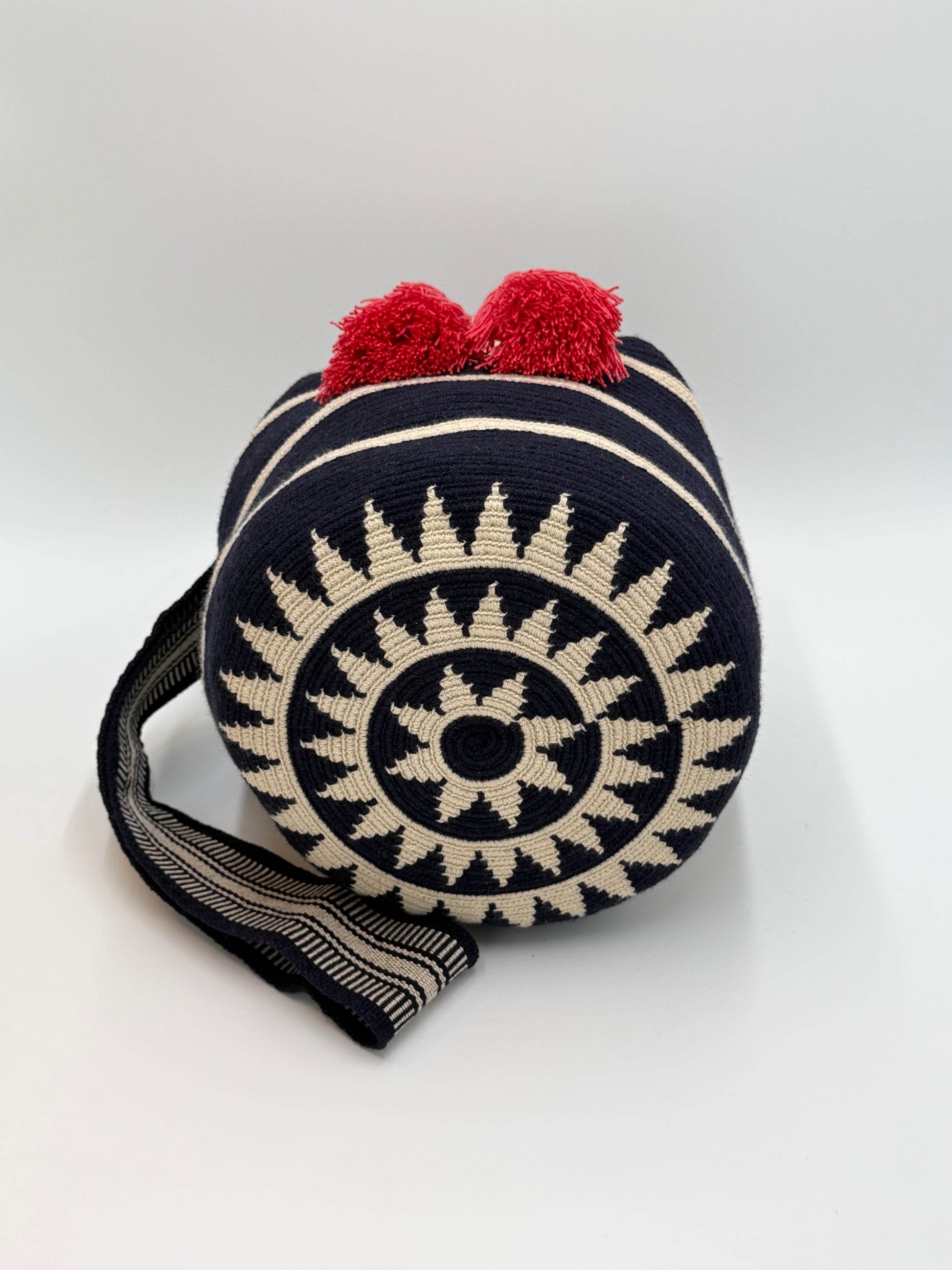 Deze LolaGrace Large Wayuu-tas is gemaakt met de dubbele draadtechniek.